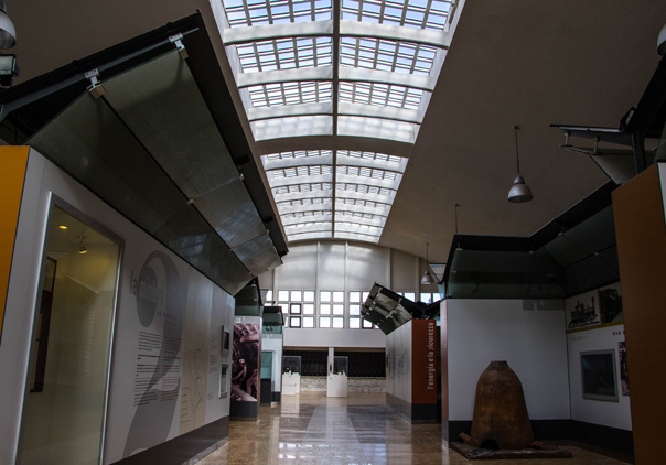 Modern uses of buildings dating back to the thirties, preserved and restored in the most faithful way to the architecture of the time, through the general arrangement of the area and in particular of the mining castles, winches, machine rooms of the wells, Storage, thermal power plant, refrigeration tower and raw coal silos.