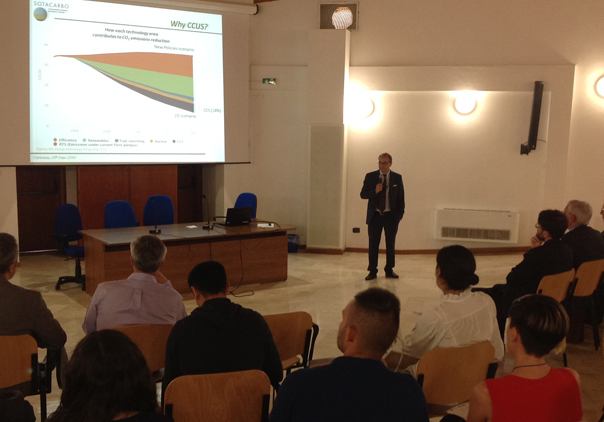 Marcello Capra, in rappresentanza del Ministero dello Sviluppo economico, ha presentato le politiche internazionali sulle Ccs, soffermandosi sul Set-Plan europeo, il Carbon Sequestration Leadership Forum (CSLF) americano e sulla nuova “Mission Innovation” nata all’indomani della COP 21 di Parigi nel 2015. Tre iniziative ma lo stesso campo di azione. Il nuovo pacchetto europeo clima-energia, che verrà introdotto a seguito della strategia 20-20-20, è oggi ancora in discussione per assicurare obiettivi efficaci. In particolare l’Unione mira al perseguimento della sicurezza energetica, che, passando inevitabilmente per un periodo di transizione low-carbon, incrementerà gli investimenti della ricerca per la generazione di un mix energetico rinnovabile in cui spiccherà sempre di più il ruolo attivo del consumatore, come promotore dell’utilizzo efficiente delle risorse e dell’energia. In questo nuovo scenario – afferma Capra – le CCS e CCUS avranno obiettivi specifici, non ultimo la creazione di infrastrutture di trasporto. La raccomandazione a livello comunitario e mondiale è di muoversi rapidamente per lo sviluppo di prototipi (First Of A Kind). Niente più sussidi governativi ma progetti che si autofinanziano. Ad Abu Dhabi nel 2017, il settimo incontro ministeriale del CSLF ha incoraggiato, anche per le Ccus, la creazione di strategie a livello regionale che sviluppino, sperimentino e incoraggino il coinvolgimento degli stakeholders sino alla cooperazione a livello comunitario e internazionale riducendo in questo modo i costi di nuove tecnologie. La scuola è entrata poi nel vivo con la presentazione di Bhima Sastri, del Department of Energy americano, che ha dato un quadro delle attività portate avanti in questo settore dal National Energy Technology Laboratory. Dopo una breve carrellata dei vari aspetti della catena CCS e CCUS, lo studioso americano si sofferma sulla tecnologia Chemical Looping Combustion, una tecnologia promettente e testata con successo dal Department of Energy per la produzione di energia e la contemporanea cattura di correnti ricche di CO2 a costi competitivi. Nei prossimi giorni la Scuola passerà in rassegna tutte le tecnologie di separazione, confinamento e riutilizzo della CO2 e offrirà ai partecipanti una visione globale della ricerca e degli scenari energetici mondiali legati a tutti i problemi relativi alle emissioni di CO2; fornirà informazioni e aggiornamenti sugli aspetti tecnologici delle CCS, sugli sviluppi della ricerca, delle sue applicazioni e sullo stato di attuazione dei progetti in corso a livello europeo e internazionale. Una nuova sfida rappresentata dalla cattura e dal riutilizzo della CO2 non più solo residuo ma risorsa. EL