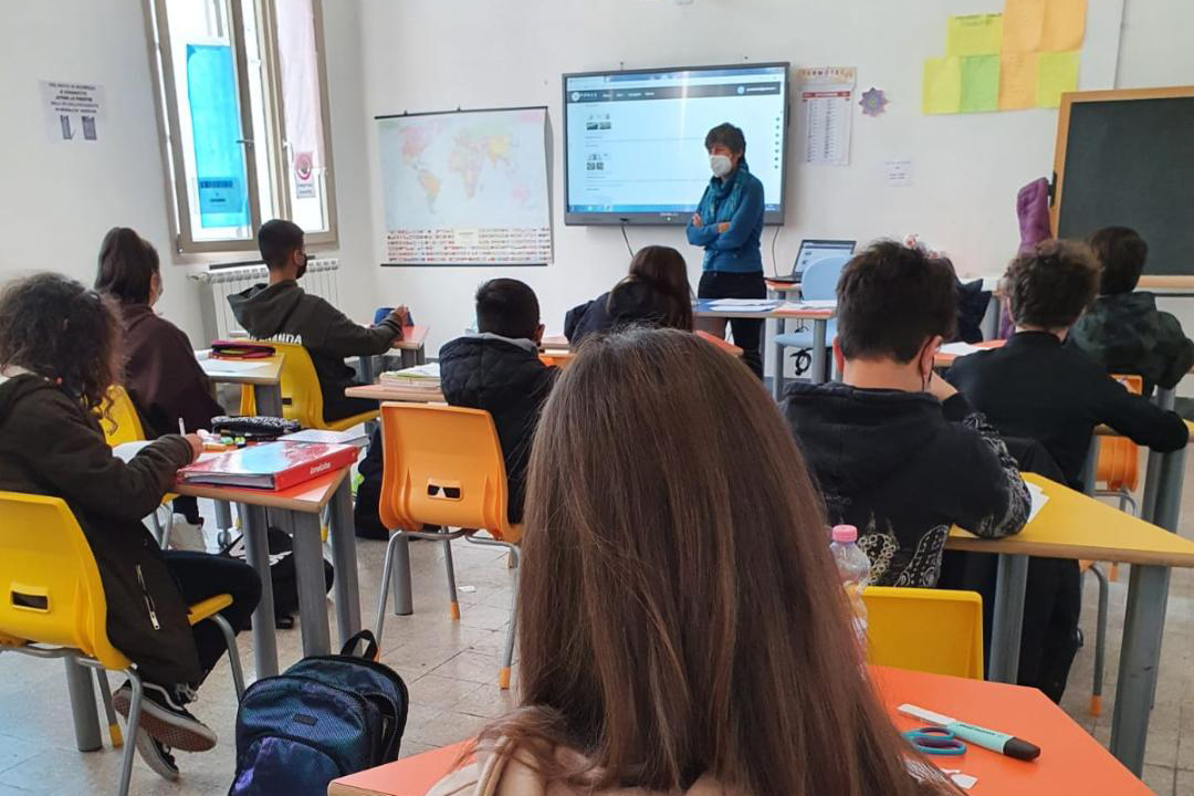 Un momento dell'attività condotta in classe sull'analisi del questionario AUREE sull'efficienza energetica degli edifici