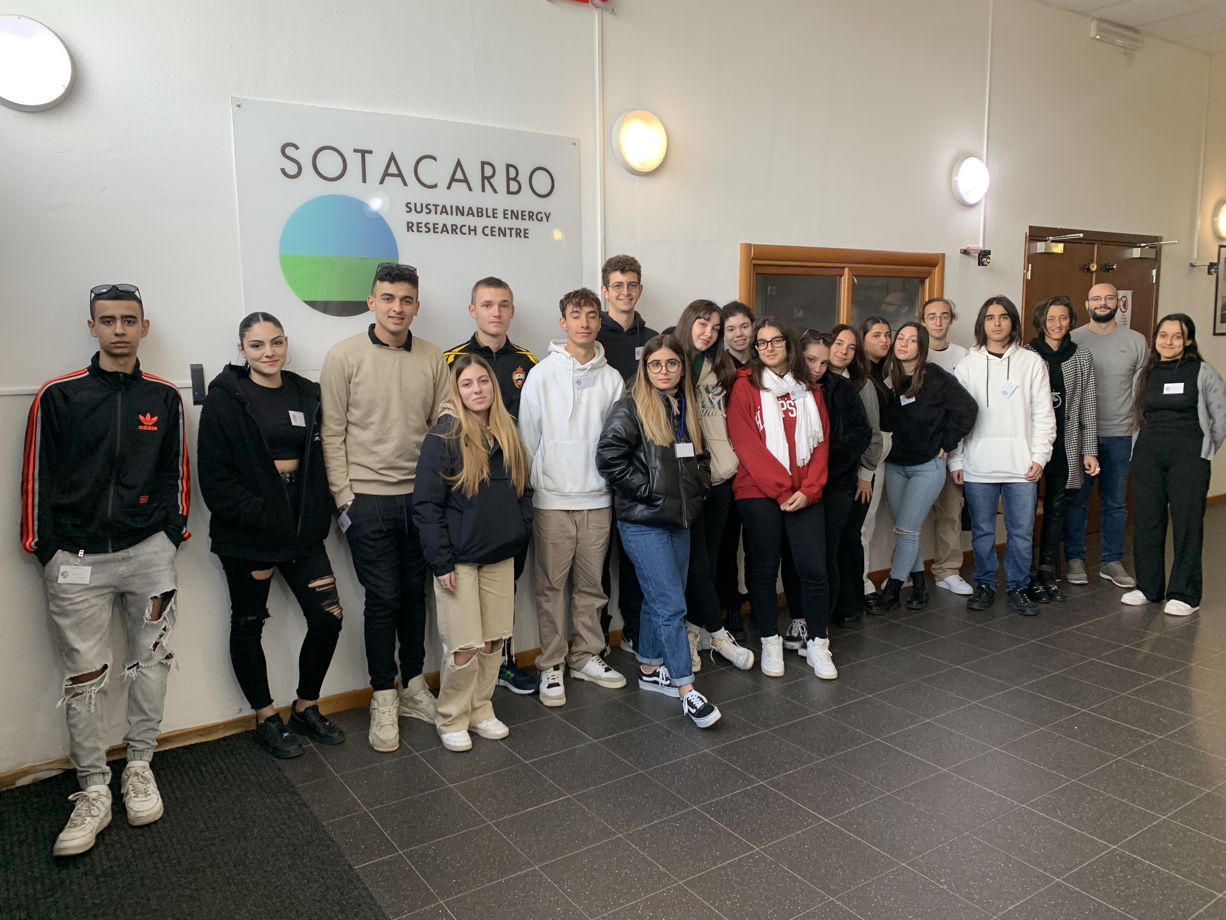 Se la prima parte del percorso ha senz'altro colpito i più giovani (bambini e ragazzi che hanno vivacizzato la sala con domande e curiosità), nella seconda si svolta la visita nei laboratori e negli impianti del Centro Ricerche, cuore dell'attività Sotacarbo. Tra impianti da banco sperimentali, bilance, matracci e strumenti di misura, è stato possibile spiegare con un linguaggio semplice che l'anidride carbonica deve essere prima separata (nel laboratorio cattura CO2) e poi impiegata (utilizzo CO2) per produrre combustibili innovativi come il metanolo. Raccontare che la gassificazione è un processo di conversione di un combustibile solido in uno gassoso è più agevole mostrando sia i combustibili utilizzati (biomasse di varia tipologia o plastiche non riciclabili) che gli impianti con cui queste trasformazioni avvengono. Il viaggio è poi terminato nel piazzale della piattaforma pilota dove buona parte delle attività realizzate in piccolo (impianti in scala da laboratorio o da banco) vengono testate in impianti dimostrativi o pre-commerciali, con l'obiettivo di dare un contributo alla ricerca scientifica in tema di riduzione delle emissioni e dei costi per la produzione di combustibili o di energia a basso impatto.