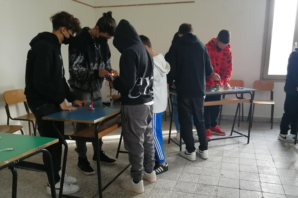 Laboratorio sui circuiti elettrici – III^ B Satta – I ragazzi familiarizzano con i materiali a disposizione per realizzare semplici circuiti