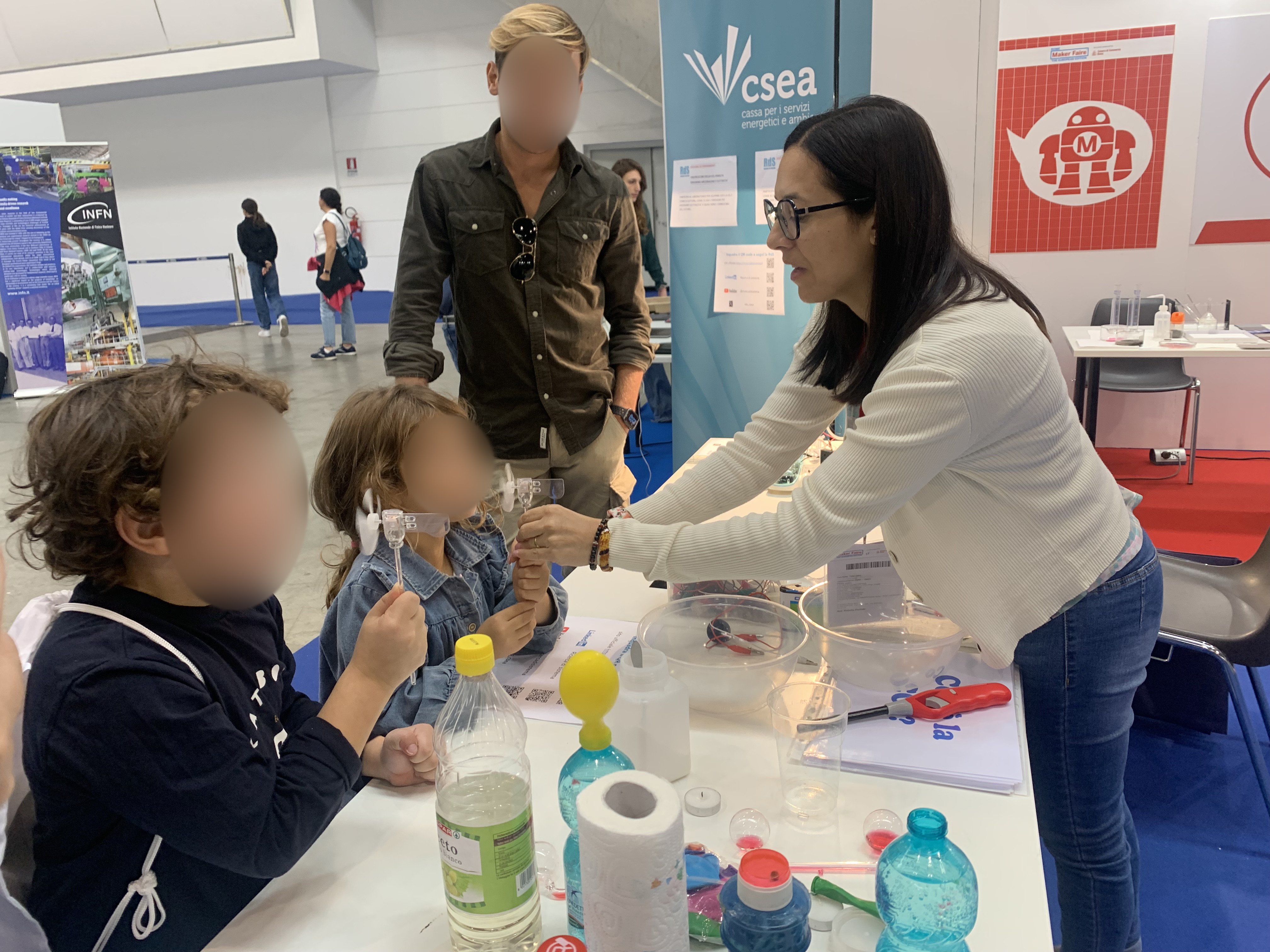 Di energia, invece, si è parlato nel secondo laboratorio: un viaggio nelle molteplici forme di energia, dalla termica all'eolica, dalla meccanica all'elettrica, fino a quella che mette in gioco l'idrogeno. I visitatori hanno toccato con mano, nel vero senso della parola, piccoli dispositivi funzionanti con le diverse fonti energetiche. Particolarmente apprezzata la macchina ad idrogeno, un modellino che, grazie ad una particolare cella a combustibile (fuel-cell), trasforma l'energia chimica dell'idrogeno direttamente in energia elettrica. Ma per farlo sfrutta il procedimento inverso: utilizzando acqua e fornendo energia elettrica (anche tramite un piccolo pannello fotovoltaico) avviene l'elettrolisi dell'acqua che genera l'idrogeno poi riconvertito per far muovere la macchina. Un gioco che spiega come il futuro prossimo sia molto più vicino di quanto si creda. AOrsini